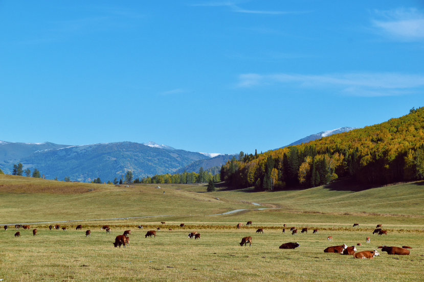 Kazakhstanis are more nomadic; especially in the northern region of Xinjiang. From spring to winter, three pastures are transferred a year. This time we happened to be transitioning from summer pastures to autumn pastures. On the way to Keketuohai, you can see herds of cattle and sheep. The rules are perfect, crossing the road, walking through the wilderness, and walking into the distance! At this time, "The Shepherd of Keketuohai" rang in my ears, thinking of the youthful throbbing of Ba Tai and Wenxiu, and thinking more about the love and marriage of nomads.