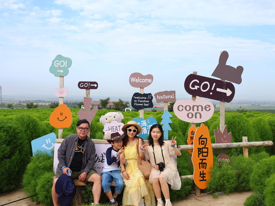 According to the itinerary, we are going to Tianshan Flower Sea, but the leader said in the morning," This year, the flowering period is early, most of the flowers are gone, and we may see'residual flowers'. " I was a little disappointed, but when I got to the place, I was cured - although most of the daisies and lavender had died, there were still a few clusters of gesang flowers stubbornly blooming, pink and white, swaying in the wind. The sunflowers on the edge of the ridge were blooming just right, and the golden flower disc followed the sun. Occasionally, bees "buzzed" into it and stumbled away. Set off towards Tex. On the way, I first visited the Tianshan Flower Sea. Although I already knew that the flowering period of the flower sea was coming to an end, and the teams assembled on August 6 and later would cancel the visit to Tianshan Flower Sea to increase the time of Karajun, I still wanted to see it for myself. In the Tianshan Flower Sea, most of the flowers have begun to wither, but there are still some tenacious flowers swaying in the wind, telling the once prosperous. There was a faint fragrance of flowers in the air, and some bees were busy among the flowers, they seemed to be saying their final goodbyes to these dying flowers.