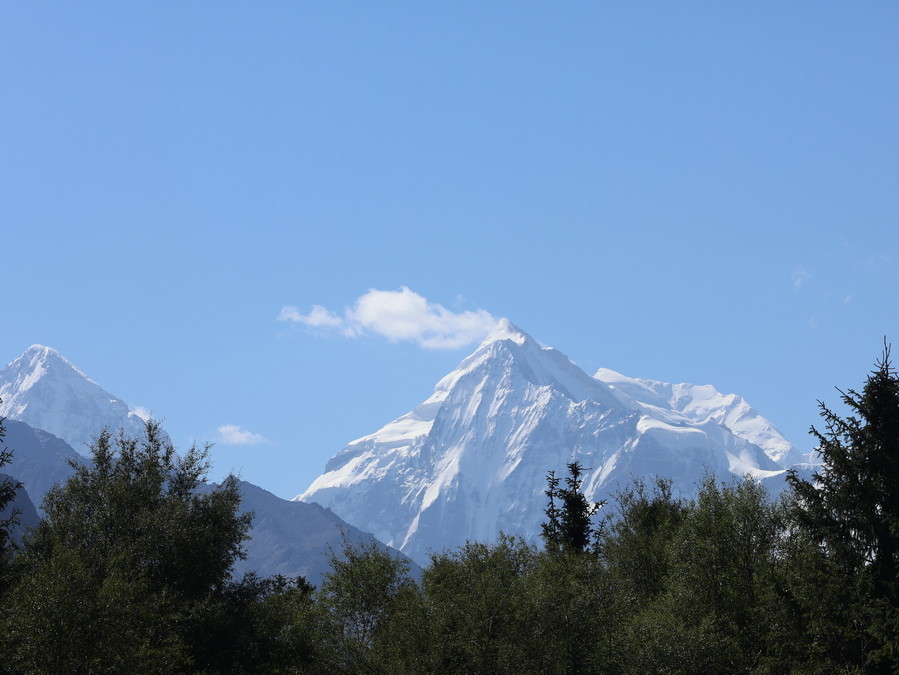 When crossing Hashilegendaban, I saw a spectacular view of the snow-capped mountains. The snow on the snow-capped mountains shines silver in the sun, making people sigh at the wonders of nature.