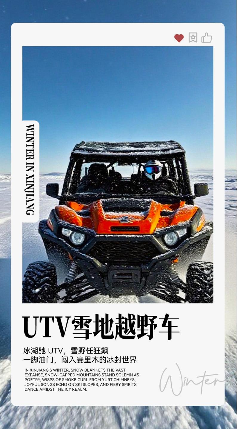 D2 Day 2: Yining - Around Sailimu Lake (Dianjiantai, Kele Yongzhu, Xihai Grassland) - Blue Ice Kiss (UTV Snowmobile, Drifting on Ice starts at 11:30) - Star Watching [About 180 kilometers, about 2 hours without traffic jams] Reference Hotel: Saili Muhu Yilai Elaine · Hechuan Yunjinye Luxury Camp (Room type cannot be specified) The following itinerary time is for reference only, subject to the actual situation: 08:30-09:30 Hotel breakfast and departure! 09:30-12:00 Go to [Sailimu Lake] and enjoy the beautiful scenery of northern Xinjiang along the way! 12:00-18:00 [360 ° Round the Lake ・ Pack all the beauty of Sailimu Lake] From the open lake surface of "Lake Sky", to the niche corner of "Ice Crack Road", and then to the shocking perspective of "Snow Mountain Reflecting Lake", 360 degrees without dead ends to feel the winter charm of Sailimu Lake. Step on the soft snow, take a photo with the blue ice, watch the broken light refracted by the sun on the lake, and play with fellow companions in the snow by the lake to fill up the joy of the journey. [Chasing Blue Ice ・ Unlocking the Blue Romance Limited to Winter] In Sailimu Lake in winter, the lake surface condenses into crystal blue ice, glowing with a translucent luster under the sun, and the photos are all "Icelandic Vision" blockbusters. ( If you are lucky, you can see the scene of swan flocks playing at close range, without bothering them. They are either cruising on the lake that is not completely frozen, or combing feathers on the shore. Occasionally, they will spread their wings and hover low in the sky, adding a smart atmosphere to the quiet ice lake. Take care of your own lunch in the scenic area. [UTV Snow Racing, Being a Wind Chaser Youth in the Snow] Run through the soft snow, pass through the open snow around Sailimu Lake, and pass by the niche corners with hidden ice cracks. Every time you go to a beautiful scenic spot, the coach will stop and let you take pictures. Sitting on the UTV, with the blue ice of the snow-capped mountains as the background, the gesture of "Yeah" is compared. The sense of cool tugging is directly filled, and the shooting is a visual sense of "highway blockbuster". (Due to the thick snow conditions, the team arriving at Saihu at 11:30 will start to arrange) 18:00-20:30 Check into the Saihu East Gate Hotel. Today's warm reminder 1. In winter, the ice surface of Saimu Lake can only enter the designated safe area of the scenic spot. There is a risk of cracks on the uneven ice surface in the unopened area, and unauthorized entry is strictly prohibited. 2. Ice surface activities need to be accompanied, and running and jumping are prohibited. Children should be kept under close watch throughout the process to avoid out of sight. 3. Clothes should be matched according to "wool thermal underwear + fleece jacket/down liner + windproof and waterproof down jacket + fleece shock pants", and cotton underwear should not be worn. 4. The camera/mobile phone needs to be placed in the inner pocket to keep warm, and then taken out during shooting to avoid low temperature causing fast power consumption and inability to restart after shutdown. 5. Do not step on unopened ice/snow vegetation, do not throw garbage on ice and snow, and carry garbage bags with you to take the garbage out of the scenic spot. 6. When shooting ice bubbles and blue ice, it is forbidden to hit the ice surface with sharp tools such as ice picks and hiking poles to avoid damaging the ice structure. Elaine Camp