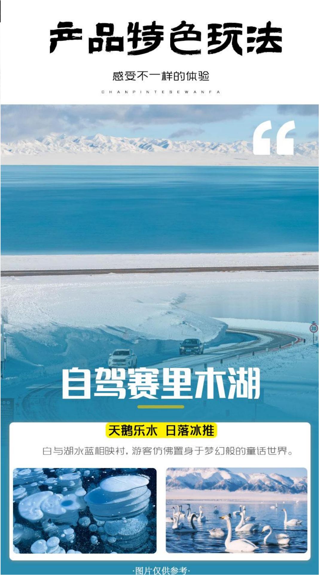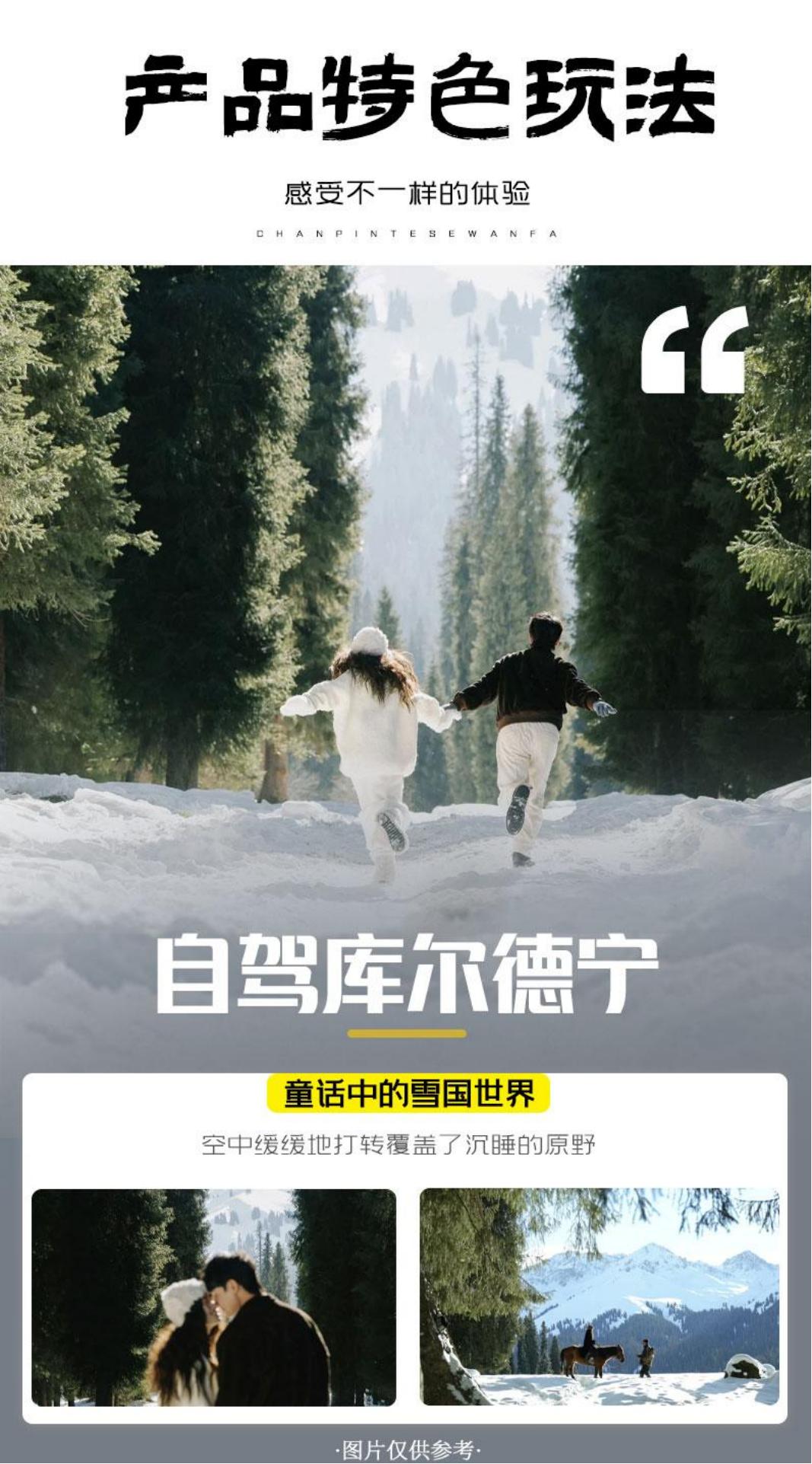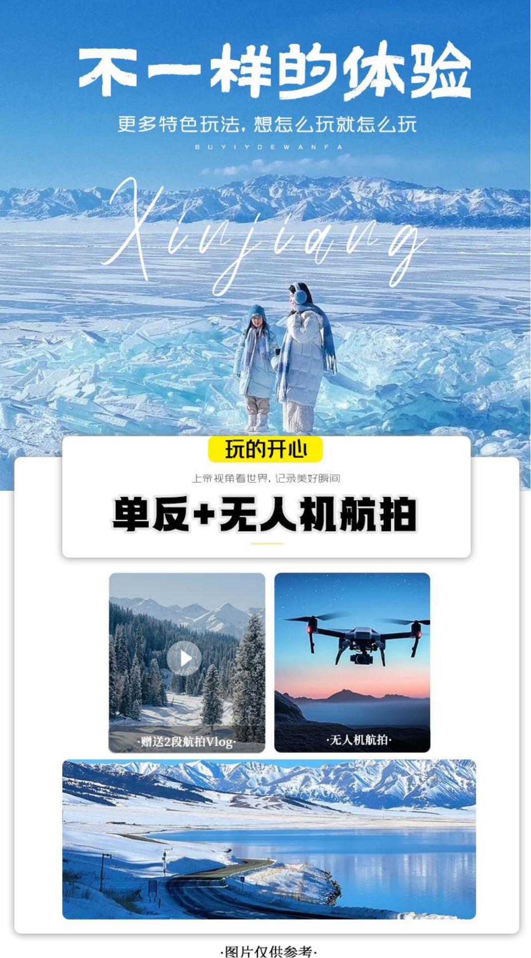 • Arrange monocular camera shooting (15 photos) + drone shooting two short videos/Vlog (including Sailimu Lake following video), capture the silver-wrapped wilderness from a high-altitude perspective, making the flowing scenery an unforgettable memory.
