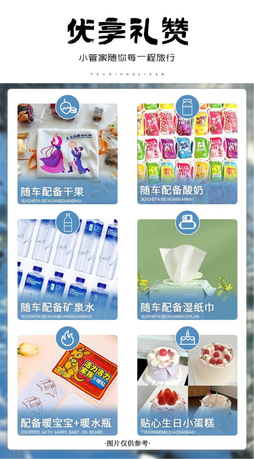 Each person is limited to 1 28-30 inch suitcase + 1 backpack (due to limited trunk space). The actual model is subject to the arrangement of the day, and seats need to be changed daily when carpooling. In view of the long distance between scenic spots in Xinjiang, pregnant women, breastfeeding women and the elderly over 75 will not accept group participation for the time being. Please understand.