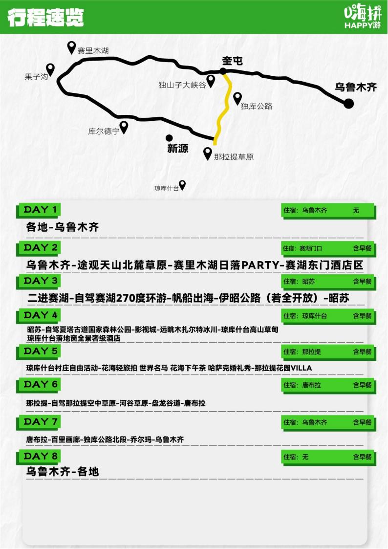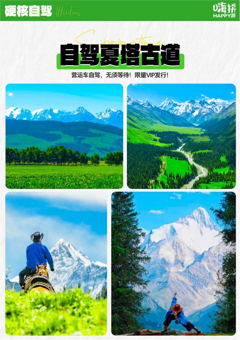 Rotation Seats: This group is a carpooling product, and seats need to be rotated every day. There is no guarantee of age and gender areas Hardcore self-driving Nalati panorama: all self-driving cars enter! Air grassland + river valley grassland + Panlong Valley Road (when the single warehouse is open) Hardcore self-driving Joan Kushitai: The Wizard of Oz above the clouds, a small village that empties the mind and returns to nature. Hardcore self-driving Tangbra: Monet's back garden! Xinjiang's hidden version of wonderland! Hardcore self-driving 270 degrees around Saihu: azure sapphire on the mountain, comparable to TIFFANY blue! Start a dream journey!