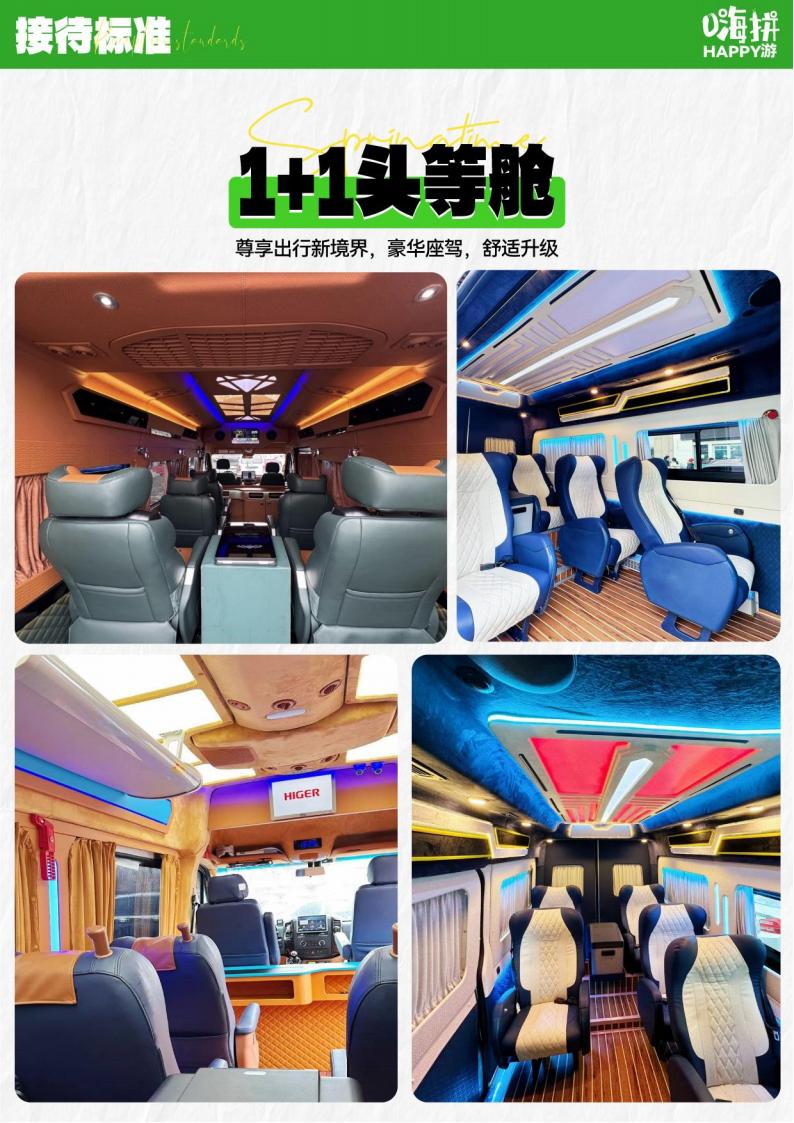 1. Transportation: Upgrade the super large space 1 + 1 first class cabin throughout the process, which can stand and sit, and can hold a 28-inch suitcase (refer to the model, including but not limited to Yaxing, Ford T8, Haige, etc.), subject to the actual car.