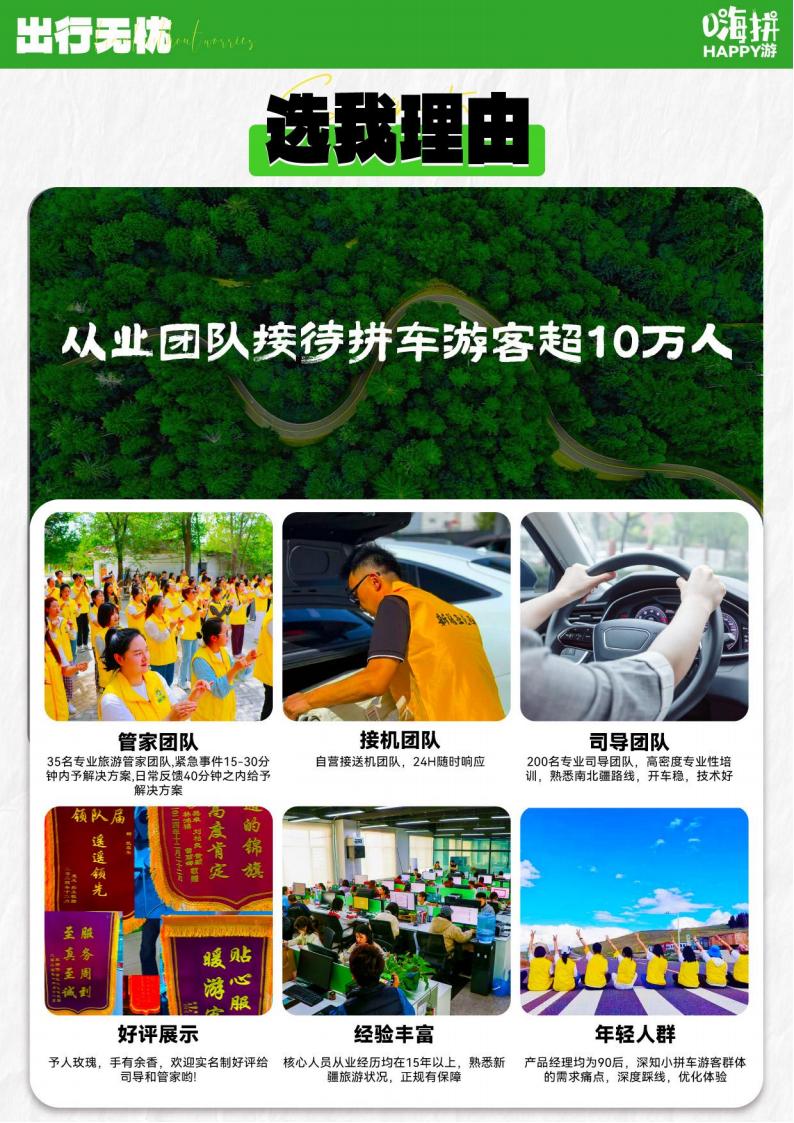 [Service team] Indigenous leaders: 200 professional director teams, familiar with the route, hi play Xinjiang butler team: 35 professional travel butler teams, solutions will be given within 15-30 minutes of emergencies, solutions will be given within 40 minutes of daily feedback, and intimate service will have a good reputation! Worry-free after-sales!